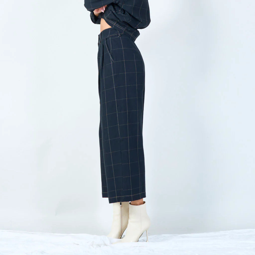 High-waisted checked trousers with contrast stitching